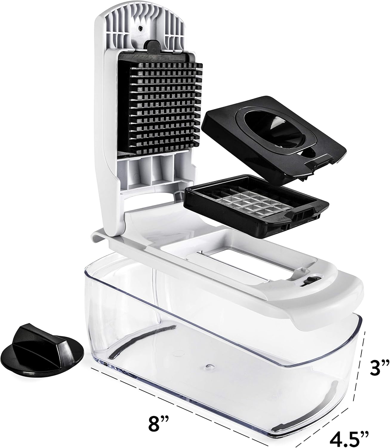The soft-grip handle with rubberized TPU enhances leverage while the non-skid base ensures stability during use. In half the time, safely and easily cut, dice, chop and chop fruits and vegetables.