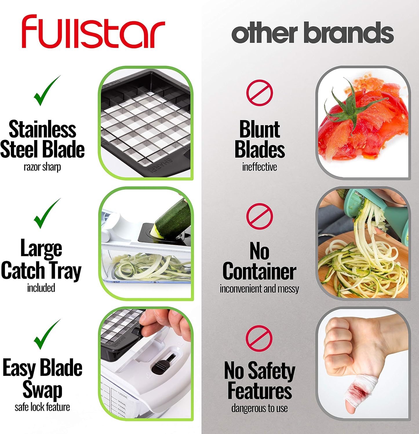 Fullstar Vegetable Chopper - Spiralizer Vegetable Slicer - Onion Chopper with Container - Pro Food Chopper - Black Slicer Dicer Cutter - 4 Blades